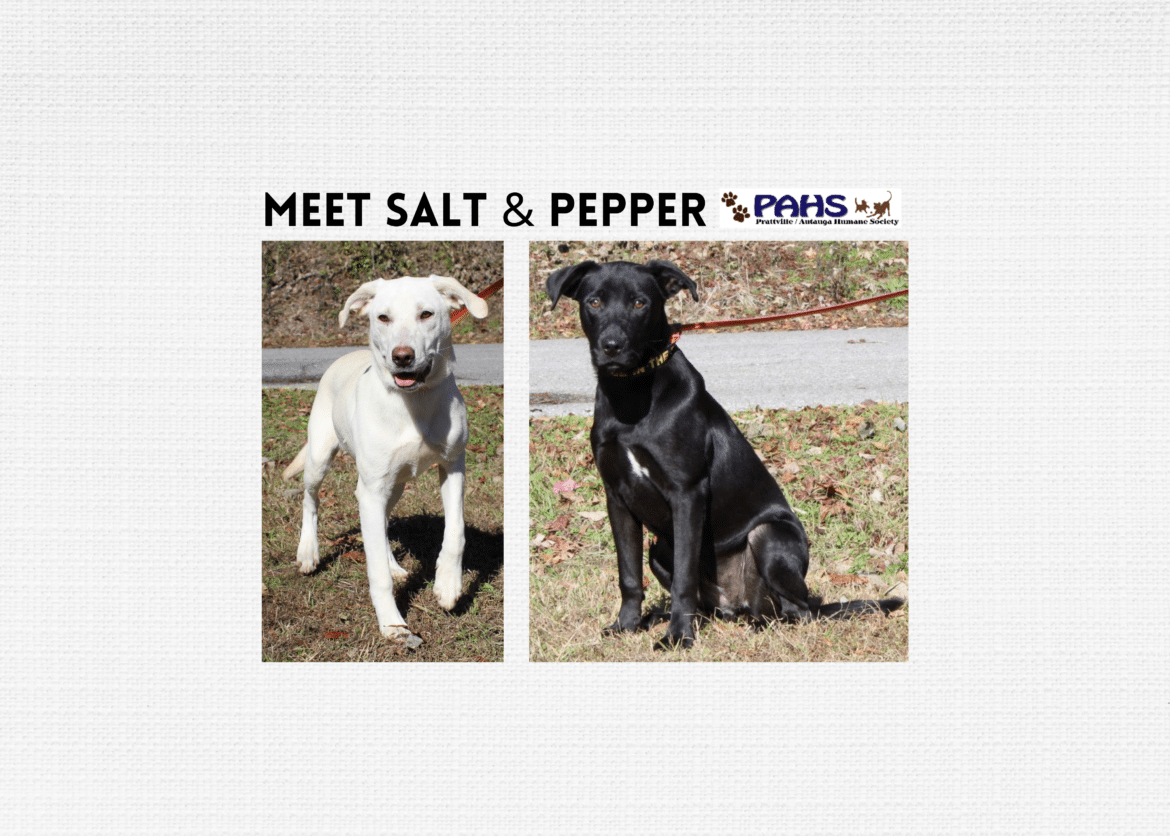 Salt is a 6-month-old female Lab mix who must be spayed before adoption. She came to PAHS with her sister, Pepper, after someone found them out in the county. Salt has a white (or cream) coat; and she weighs 36 pounds. She has a sweet personality; and we believe she would be good with children. Salt also appears to be good with other dogs. This awesome girl would make a wonderful family dog. Salt is ready for a new start on life.