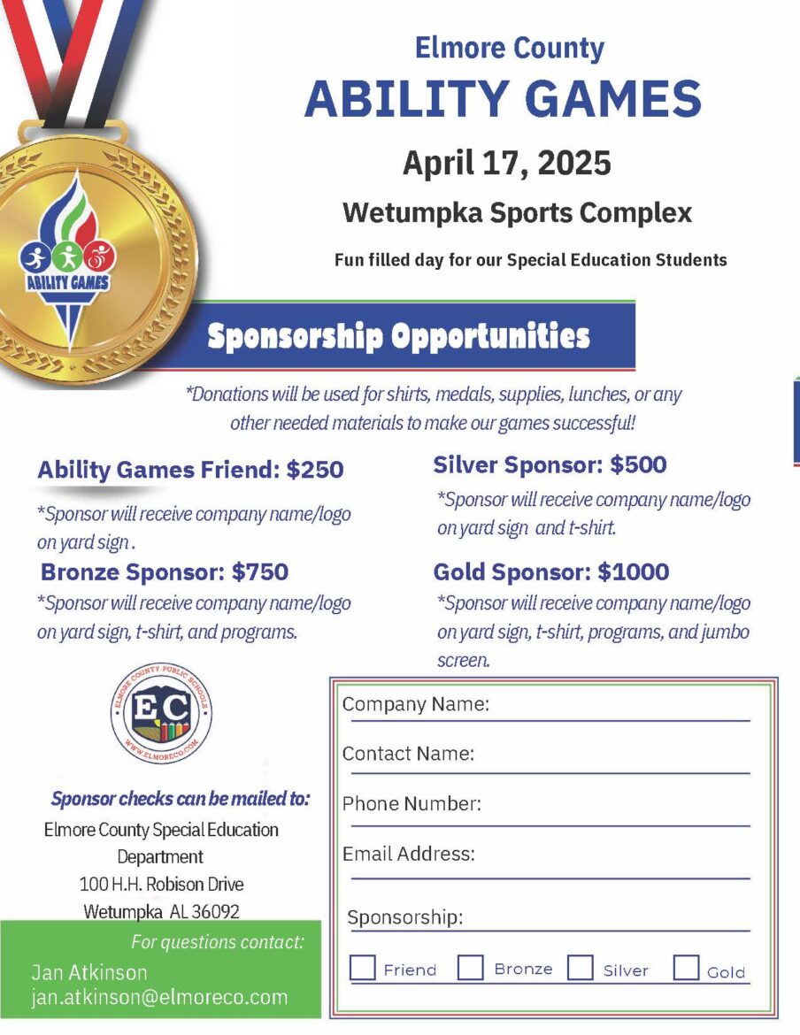 The Elmore County Ability Games are coming in April, and organizers are asking for support from area sponsors!