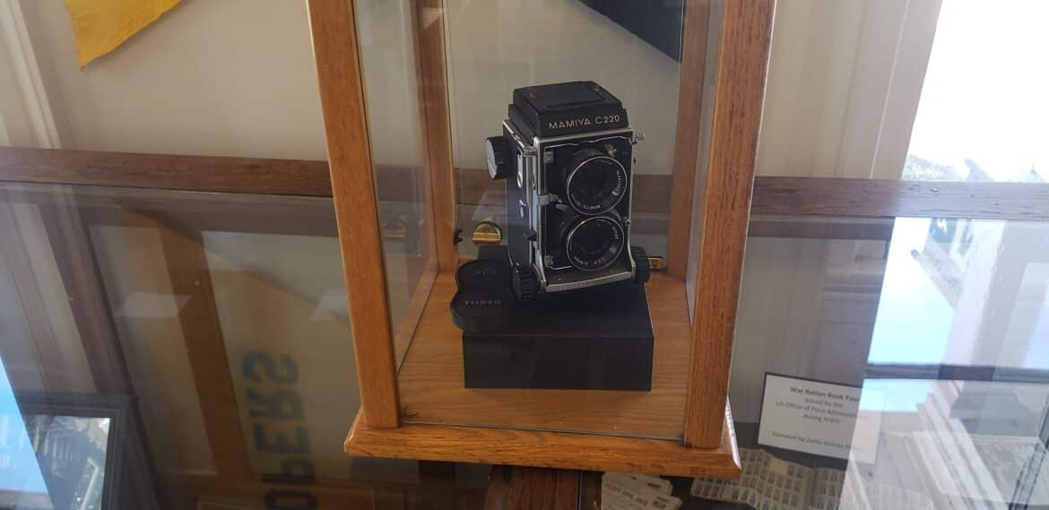 One of Jordan’s favorites is a display of badges from years’ past. Another is a large camera that was used in crime and accident scene investigations.