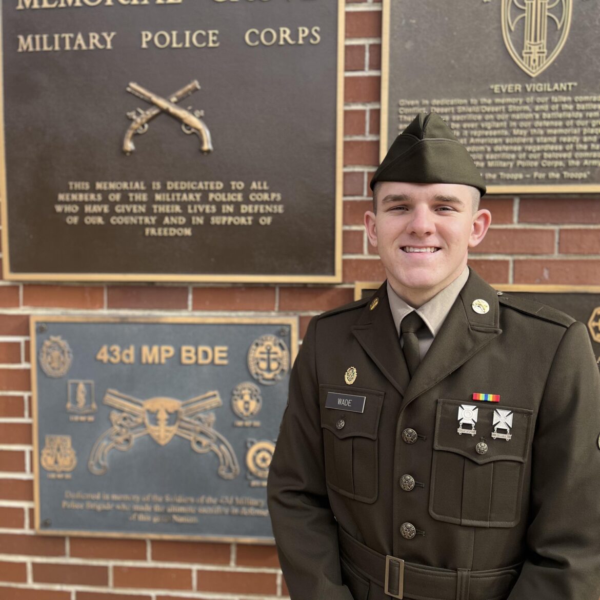 During his training, Wade demonstrated exceptional skill and dedication, earning several notable honors. He was named a Sharpshooter for his accuracy with a pistol, recognized as a Speed Demon for achieving a perfect score on the tactical driving course, and served as the Platoon Guidon for five consecutive Army Combat Fitness Tests – earning the highest scores in his platoon each time.