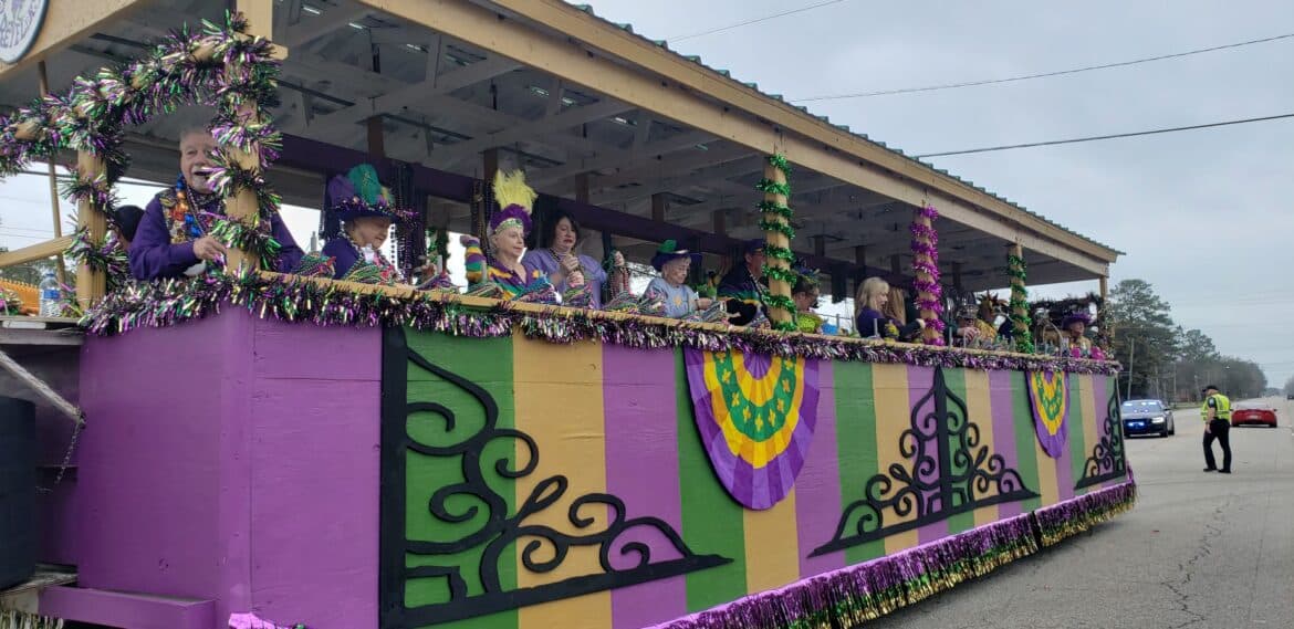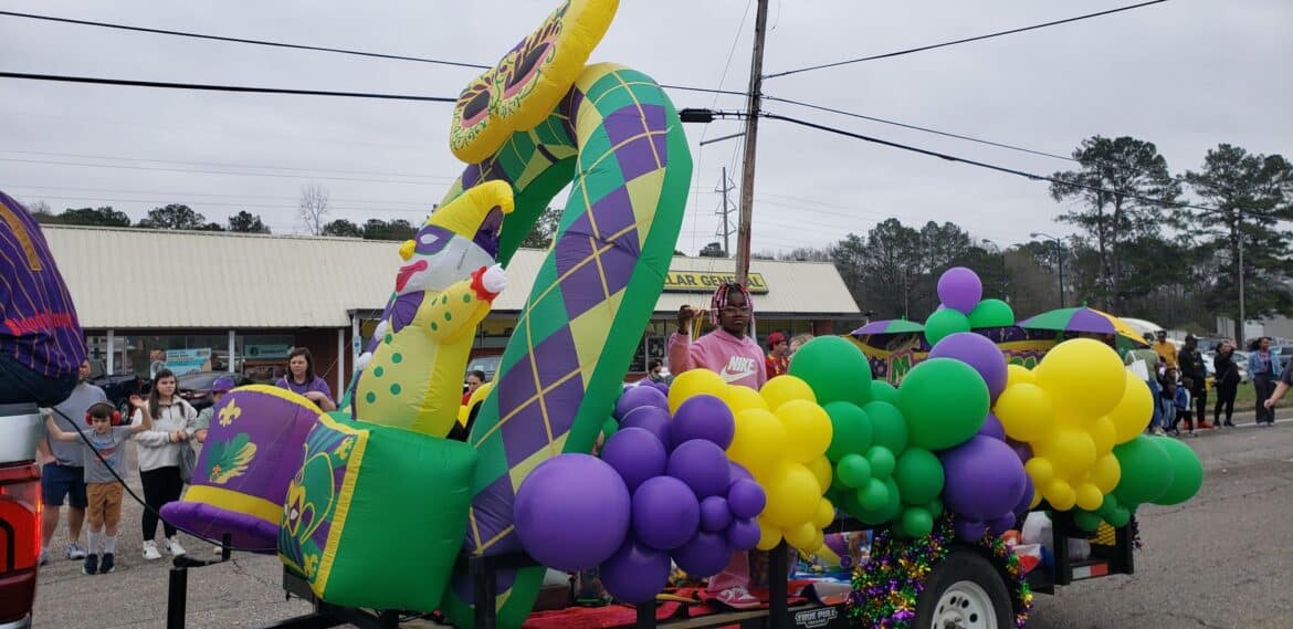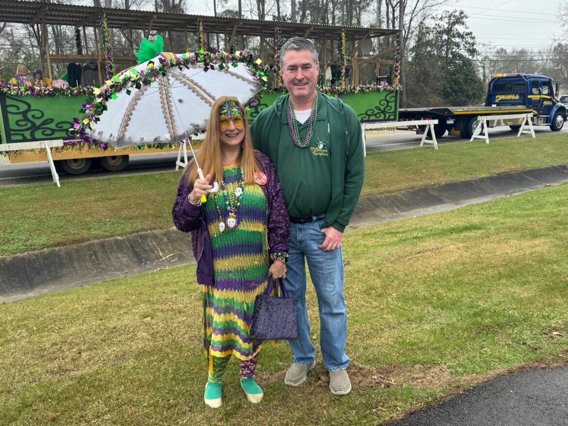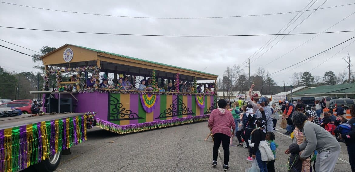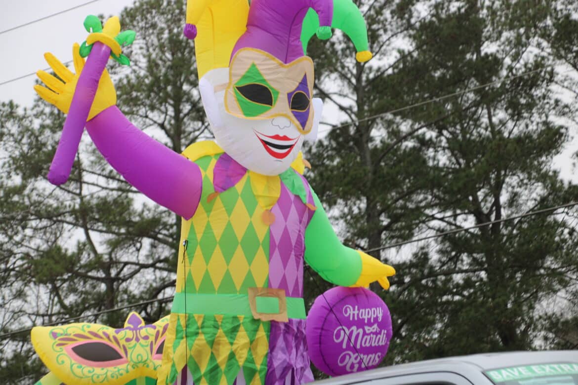 At noon, the parade rolled with 100 floats from Mill Creek Park, north on to Main Street until it passed the judges stand in front of Village Green Park. Grand Marshal for the parade Rosa Lee Wade, who was one of the first people to help organize the Millbrook Revelers. She and her husband were the first Mardi Gras King and Queen 20 years ago. Sadly, Jim passed away several years ago, but Rosa Lee said he loved Mardi Gras, and she was honored to be this year’s grand marshal.