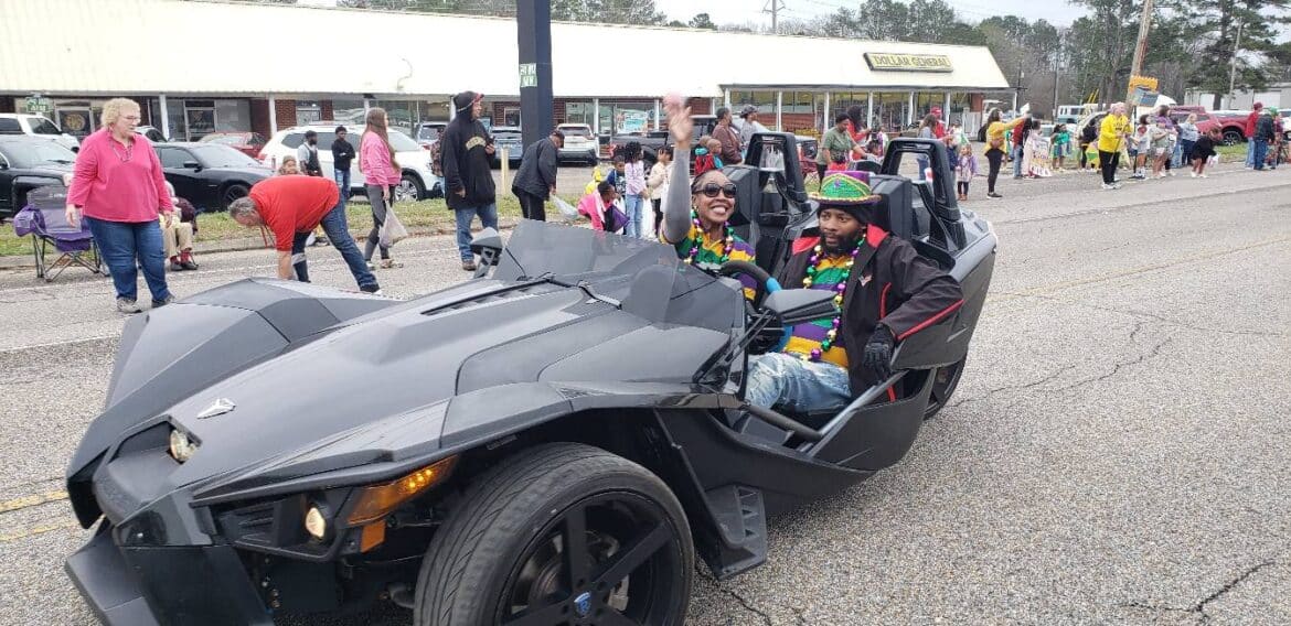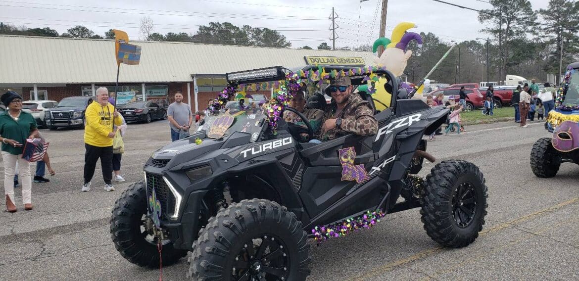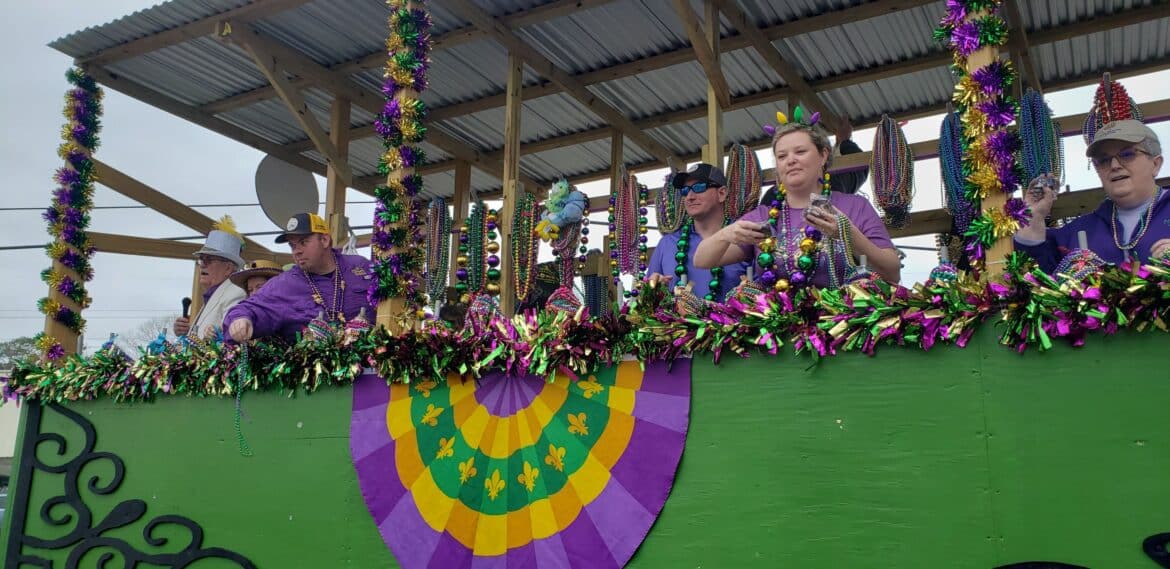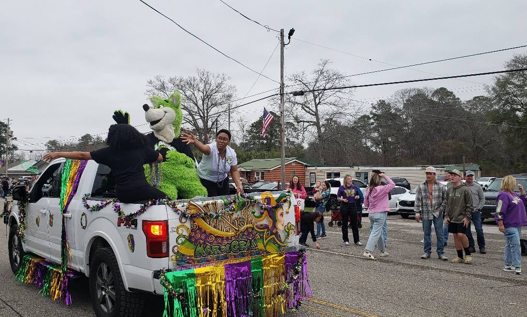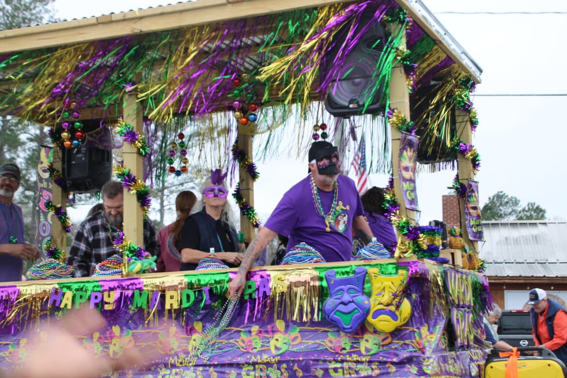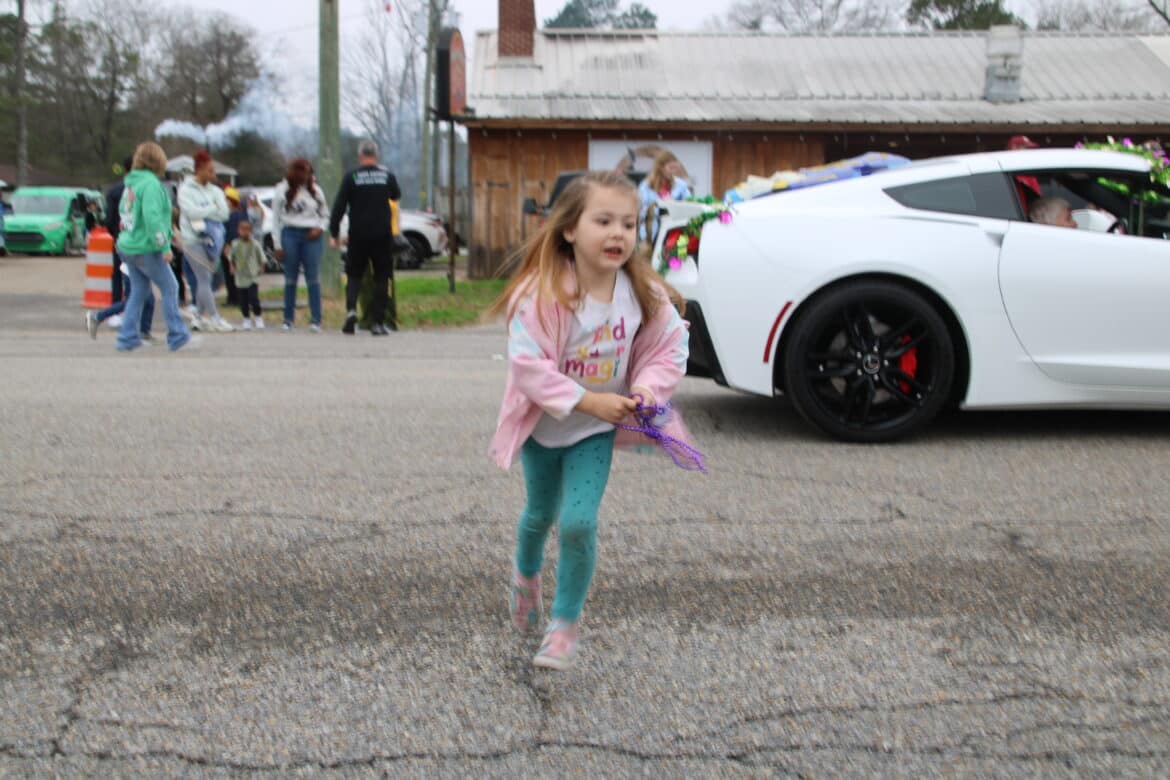 At noon, the parade rolled with 100 floats from Mill Creek Park, north on to Main Street until it passed the judges stand in front of Village Green Park. Grand Marshal for the parade Rosa Lee Wade, who was one of the first people to help organize the Millbrook Revelers. She and her husband were the first Mardi Gras King and Queen 20 years ago. Sadly, Jim passed away several years ago, but Rosa Lee said he loved Mardi Gras, and she was honored to be this year’s grand marshal.