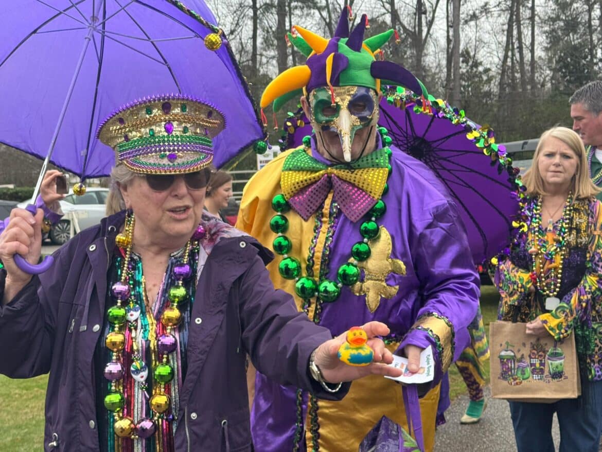 At 10 a.m. the annual Umbrella Stroll featuring Mardi Gras Queen Sheila Wood and King Walter Dodd began, with Revelers donned in their best Mardi Gras regalia parading along. Jazzy music flowed through the park as everyone danced their way around with onlookers.