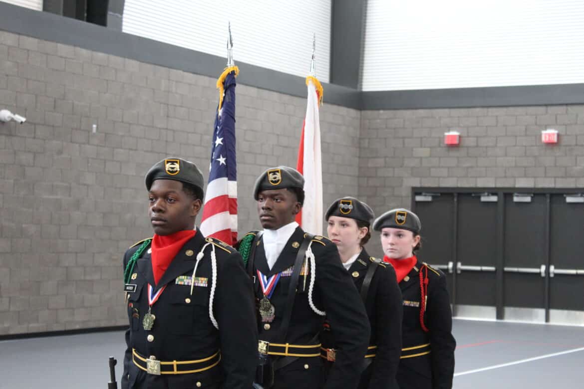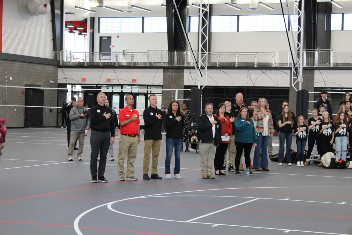 Prior to the game area officials were led on to the field for the National Anthem and recognized.