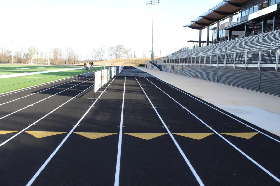 The press box at the top of the 80,000 square foot field house is expansive, with plenty of technology for local sports or event coverage. There is a catering area for private and public events when needed. The mezzanine gives a lofty view of the entire football arena and for track and field events.