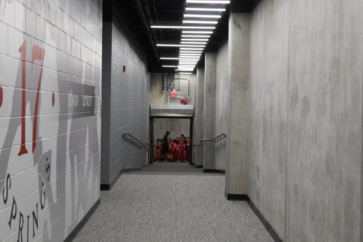 SEHS Head Coach Hunter Adams was all smiles, as he led us to the locker rooms for both home and visitors. He pointed out the long hallway, or tunnel, where players will exit onto the field.
