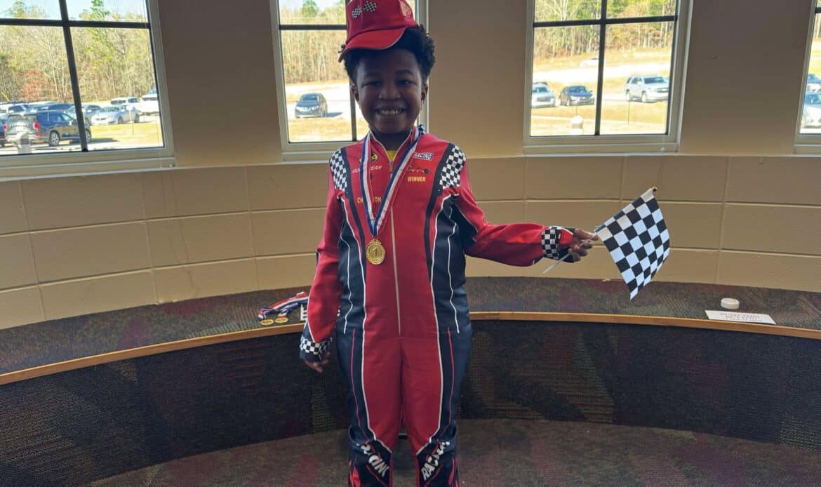 Idris R., a 3rd grade student portrayed Armani Williams, the first African American and 1st Race Car driver to represent people with Autism.