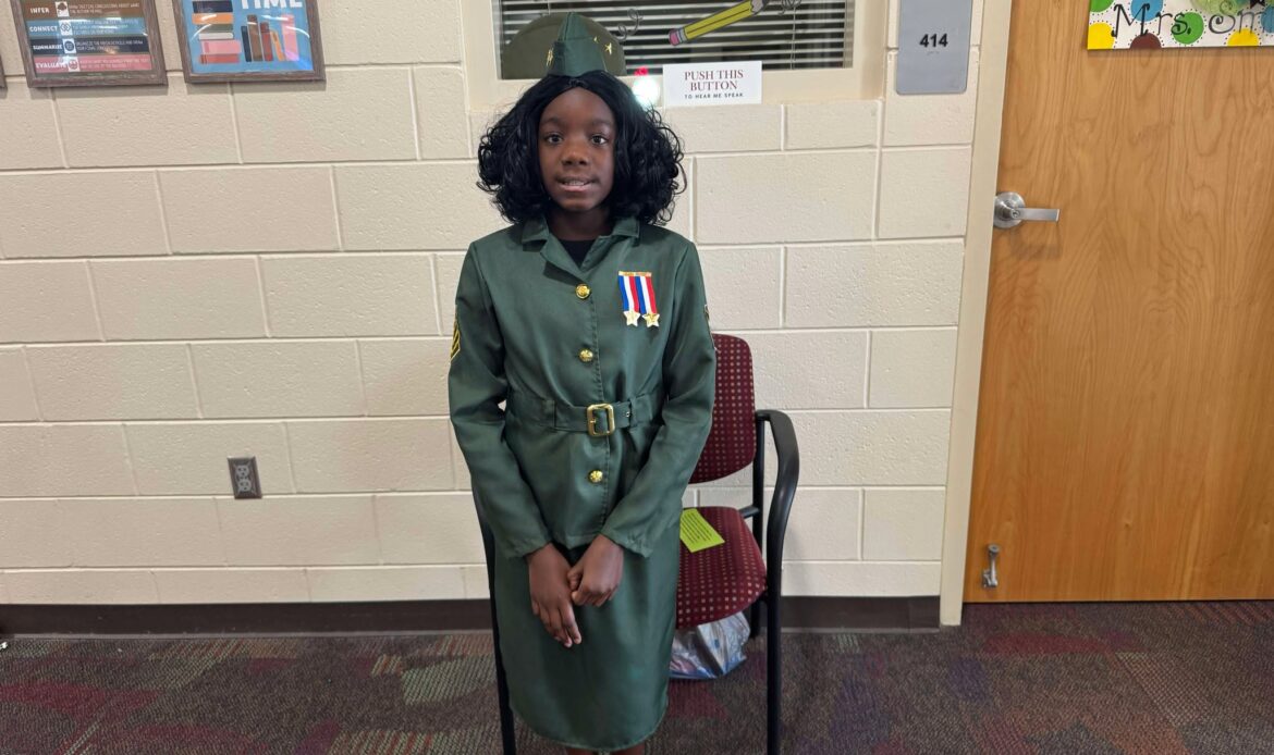 Naomi P., a 4th grade student portrayed Captain Charity Adams, the first African American woman to become an officer of the women’s army’s auxiliary corps.