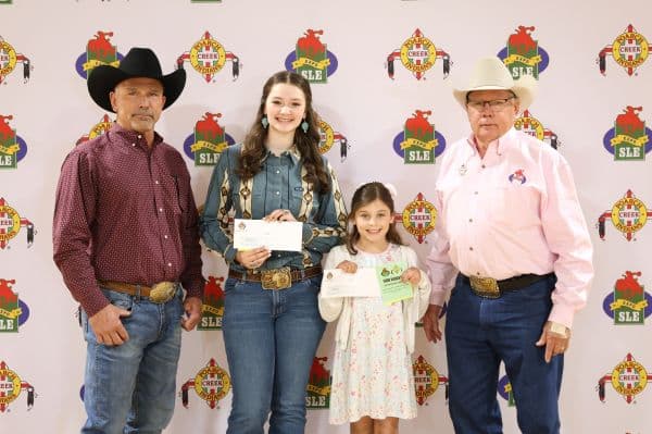 MONTGOMERY, Ala— Adriana Rasberry, Jones, and Hazel Lucas, Prattville, were each awarded a scholarship by the Poarch Band of Creek Indians (PBCI) for their participation in Alabama’s livestock industry on Sunday, March 16 at a ceremony held in coordination with the Southeastern Livestock Exposition (SLE) Rodeo. Pictured L-R are PBCI Tribal Council Member Dewitt Carter; Rasberry; Lucas; and SLE President-Elect Galen Grace.