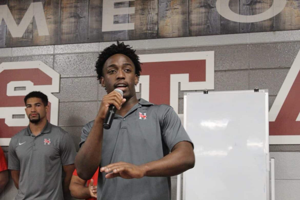Goodyear brought four of his players from Huntingdon College to the event, including Timothy McReynolds, Nicholas Brashear, Blake Palmer, and Gus Johnson. They each spoke before Coach Goodyear and were relatable to the boys in grades fifth through eighth grade. Each of the young men spoke about the men who were instrumental in their own lives.