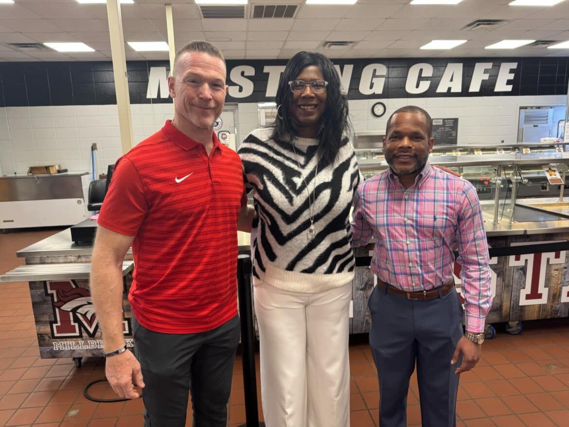 Last week, Millbrook Middle School hosted their annual Fritters and Father Figures event in the school cafeteria. Over 150 students attended with their fathers and father figures. This year, Coach Charlie Goodyear, an Assistant Athletic Director for Athletic Performance at Huntingdon College, was the guest speaker. Letitia Ruffin-Johnson, Assistant Principal for 5th and 6th grade, was in charge of putting this event together for the school. All guests enjoyed fritters, and donuts provided by Kingdom Dough of Millbrook. Coffee was provided by Sweet Hart Coffee Co., in Millbrook. Door prizes were given out at the end. Some of these amazing prizes were graciously donated by the Floyd family of Main Street Vintage Market, a swag bucket donated by Kyle Jenkins owner The Worx Auto Detail, a hat from the Millbrook Area Chamber of Commerce, and other wonderful prizes.