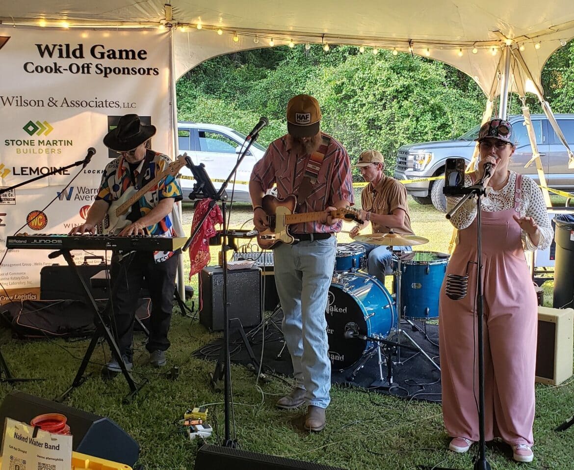 Once they made it through the entrance to the pavilion, the feast was one, as everyone could sample and taste dozens of wild game dishes. Food was enjoyed, drinks flowed, and a lot of good visiting and fun was had, indeed. Live music entertained, and a silent auction made it fun.