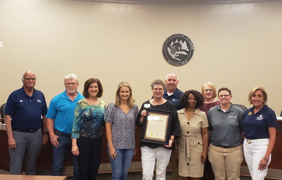 Brenda Dennis is the CEO and President of the Millbrook Area Chamber of Commerce. She was honored and recognized at the Millbrook Council meeting Tuesday and presented with a resolution in her honor. She was recently named the 2025 Alabama Chamber Champion by the Alabama Chambers organization.