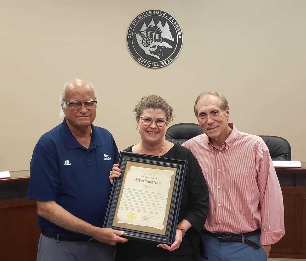 “Now, therefore, be it resolved by the virtue of the authority vested in me as the Mayor of City of Millbrook, I do hereby proclaim that we honor and commend Brenda Dennis for exceptional leadership, steadfast service and inspiring contributions to the Millbrook Community and beyond and congratulate her on being named the 2025 Alabama Chamber Champion.”