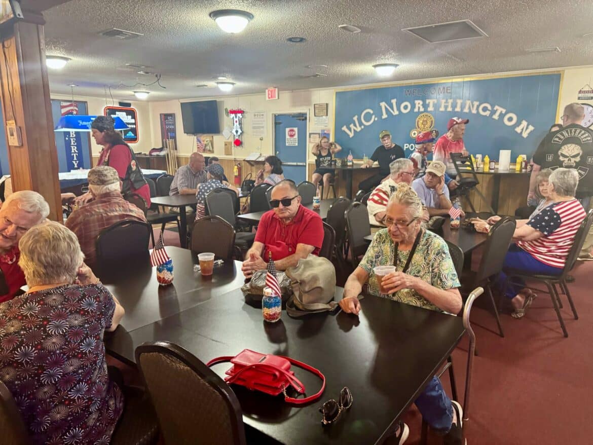 After this, Compatriots Allen Herrod and Skip Dotherow placed wreaths on memorials to veterans on the courthouse law, joined by Commander Harris and Mayor Gillespie. The audience was then asked to stand for the presentation of TAPS. At the end of the ceremony, all present were invited back to the American Legion Post 122 for a reception and lunch.