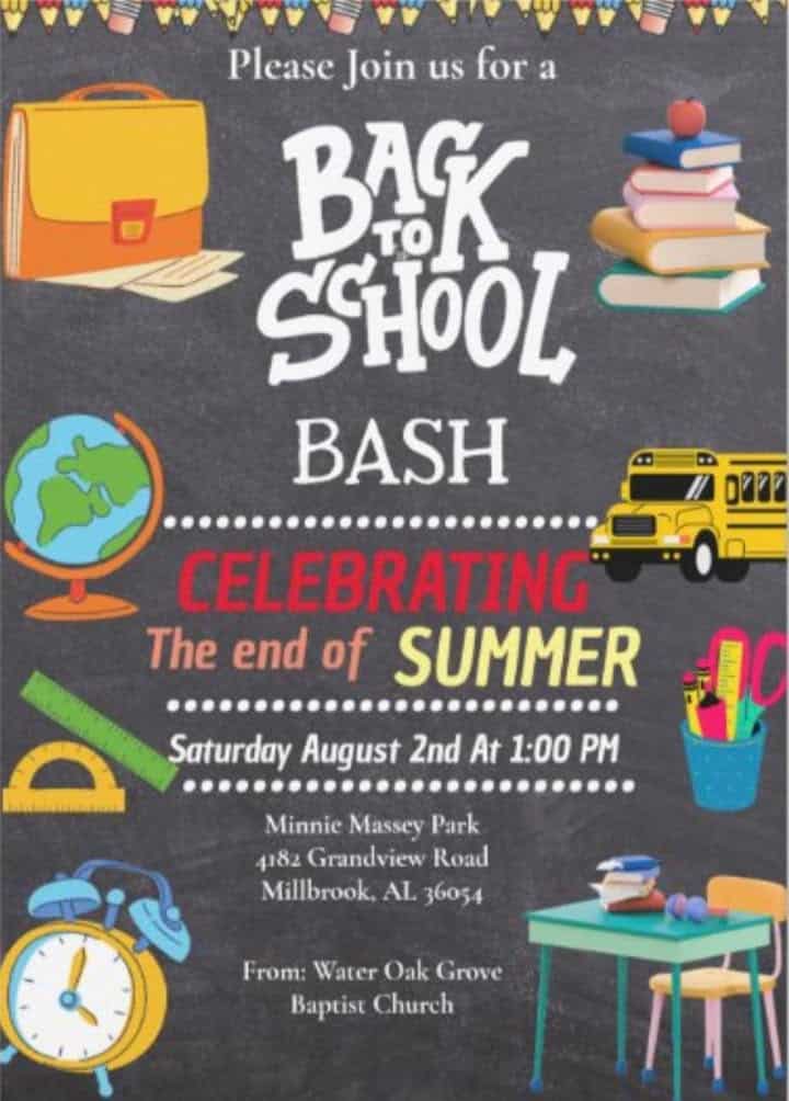 Mark your calendars for the Back to School Bash at Minnie Massie Park!