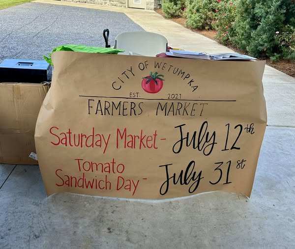 The Wetumpka Farmer’s Saturday Market is from 9 a.m. to 1 p.m. It is located at 304 E. Coosa St. Tomorrow is the general market, but Tomato Sandwich Day is coming July 31.