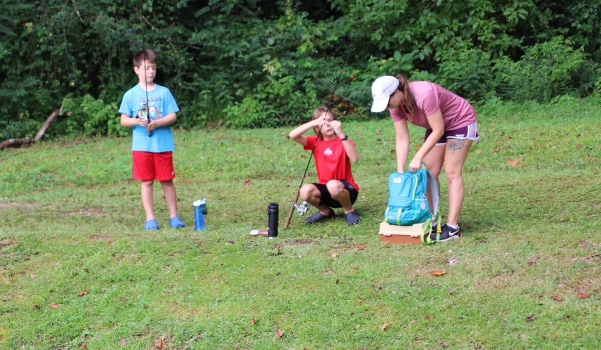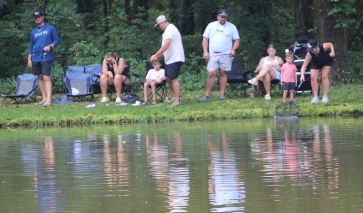 This morning the fishing was great, and the youth fishing, watched closely by family members, seemed to enjoy it all.