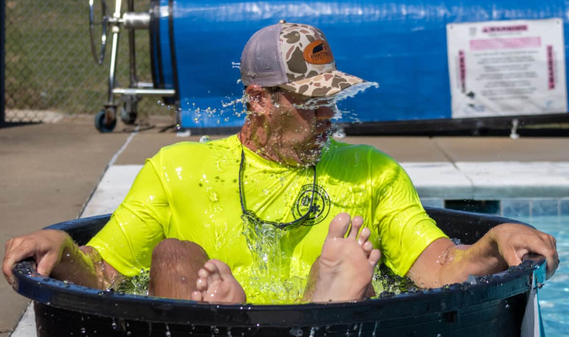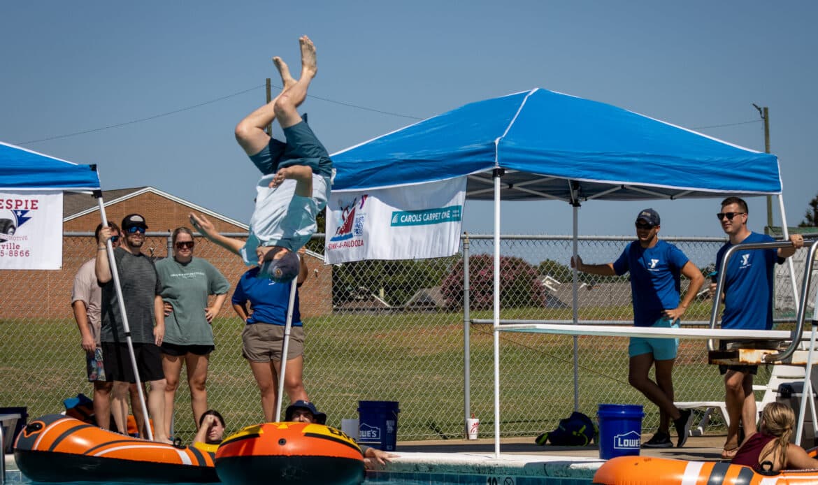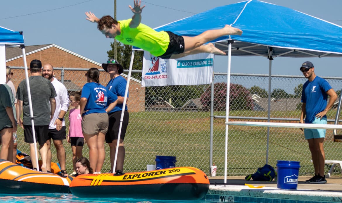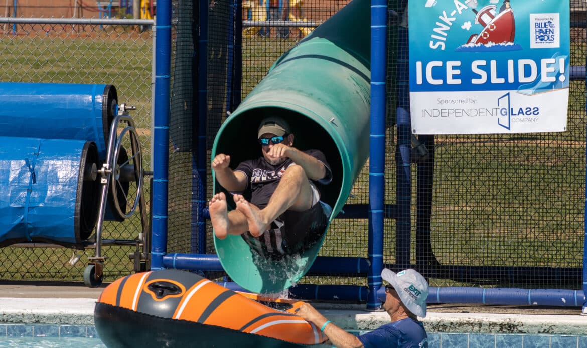 Sink-A-Palooza is a competition between local leaders and businesses to see who can raise $2,000 the fastest, which “sinks” their boat. Participants pay to see competitors dunked in ice water, dive off the diving board, slide down the water slide, or be splashed.
