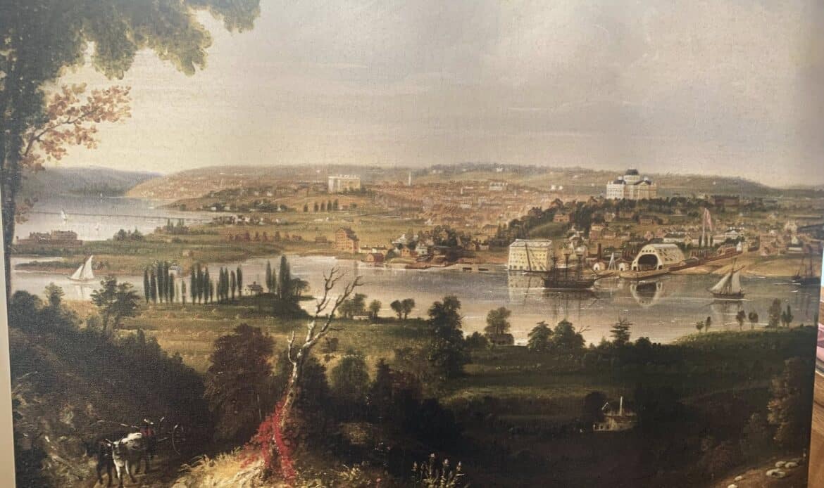 SOUTHERN ART THROUGH THE AGES displays the little-known art that is connected to Prattville’s rich history. In the 19th century, Daniel Pratt built an art gallery onto his house. Here he featured paintings by George Cooke among an other artists. On view are reproductions of Cooke’s paintings, “The View of Washington from the Naval Yard,” which is now found in the White House Collections and “The Interior of St. Peter’s Cathedral,” (17ft x 24ft!) located in the Chapel on Old Campus of University of Georgia. Cooke also was employed by McKenney-Hall to paint nine of the Native-American chiefs when they came to Washington, DC to negotiate the transfer of land (two are on display).
