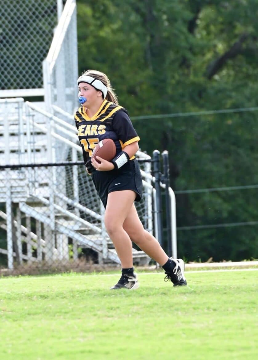 Starting a flag football program at Billingsley has been a memorable experience for Head Coach Jason Fisher, who has the added bonus of coaching his daughter, 7th grader Ella Fisher. The 7th grader had two receptions in the opening games.