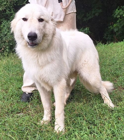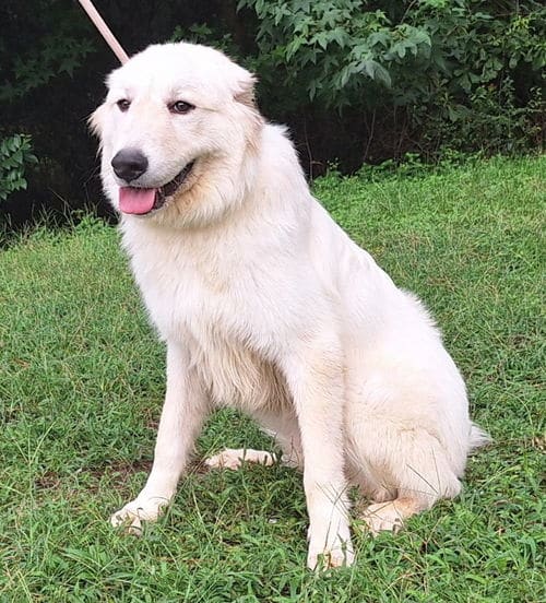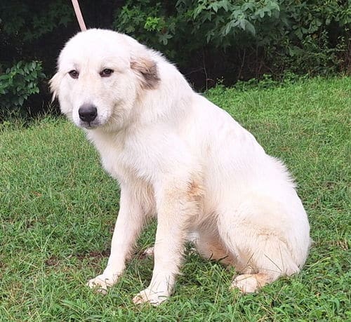 Sissy is a female Great Pyrenees, seven-months-old, about 60 lbs so not a large Pyrenees. She is super sweet, active, good with other dogs. Sissy showed up at a farm as a stray and promptly ate some of their chickens and chased the cat so might be a better city Pyrenees.