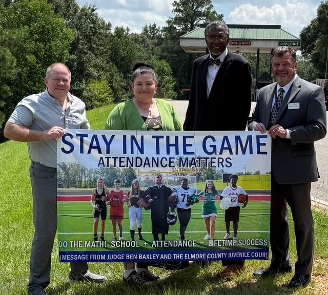 Prevention is the central focus of the Stay in the Game initiative. The Juvenile Court and its partners have launched a countywide campaign to raise awareness about the consequences of truancy. The campaign features billboards at strategic locations throughout the county. Pro-attendance signage has been placed at all public schools, and radio spots are airing on area broadcasts. Additionally, the Elmore County Commission and the Elmore County Board of Education have issued proclamations declaring September as Stay in the Game Month. The Millbrook, Wetumpka, and Tallassee chambers of commerce have included Stay in the Game messaging in their social media postings. These partners along with Elmore County Family Resource Center, the District Attorney’s Office, other community organizations, and families are committed to securing the futures of our youth.
