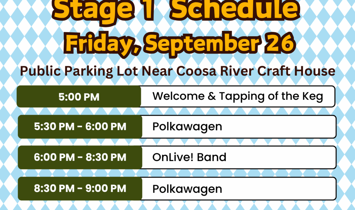 performances from Polkawagen and OnLive! Band on Stage 1 in front of Coosa River Craft House