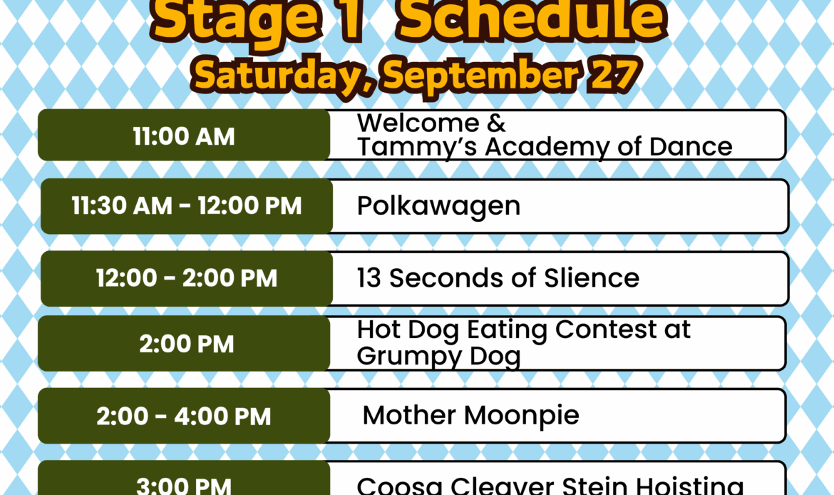 ● Grumpy Dog’s hot dog eating contest, the Stein Holding Contest hosted by the Coosa