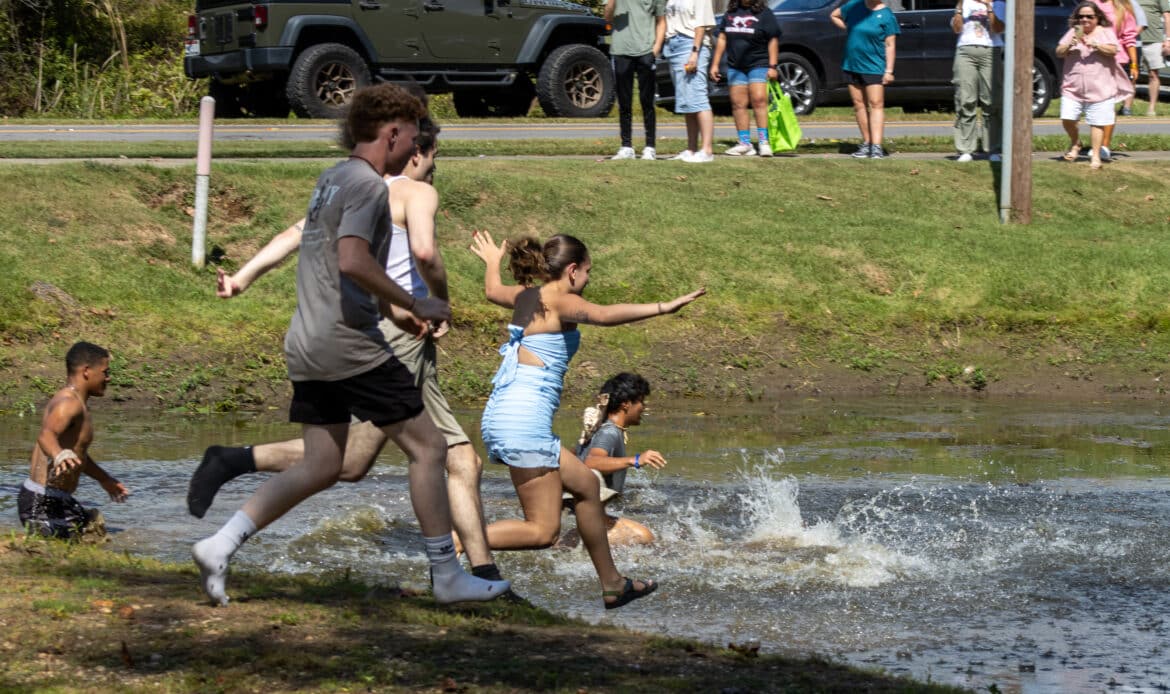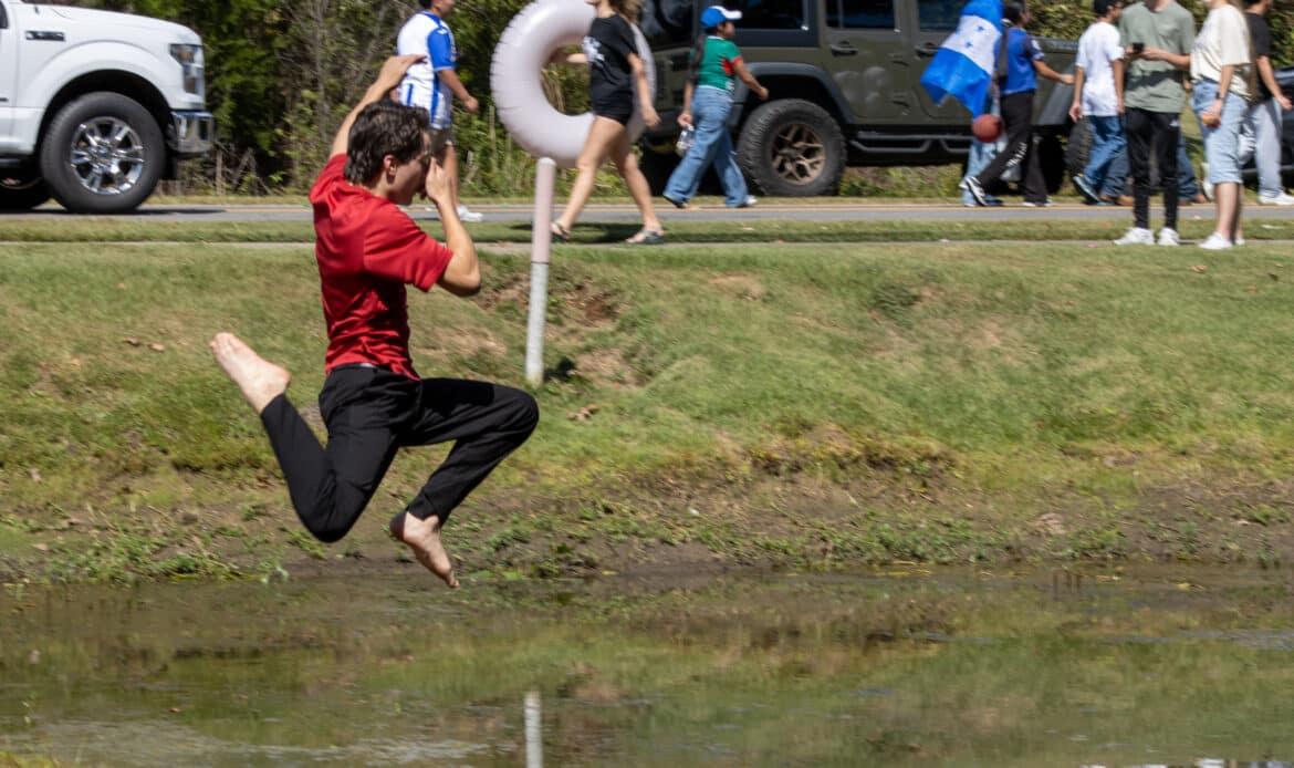 Along the way, seniors broke from the route to uphold a beloved tradition—sprinting toward a small, local pond and leaping in together, marking their final homecoming in unforgettable fashion.