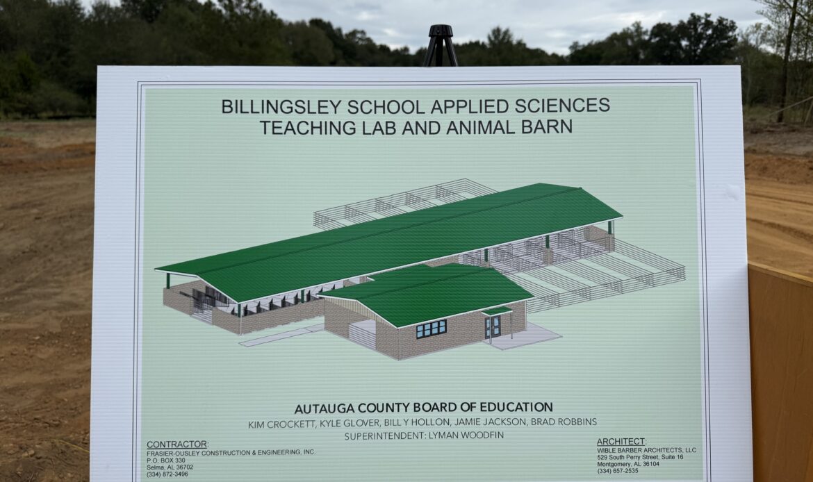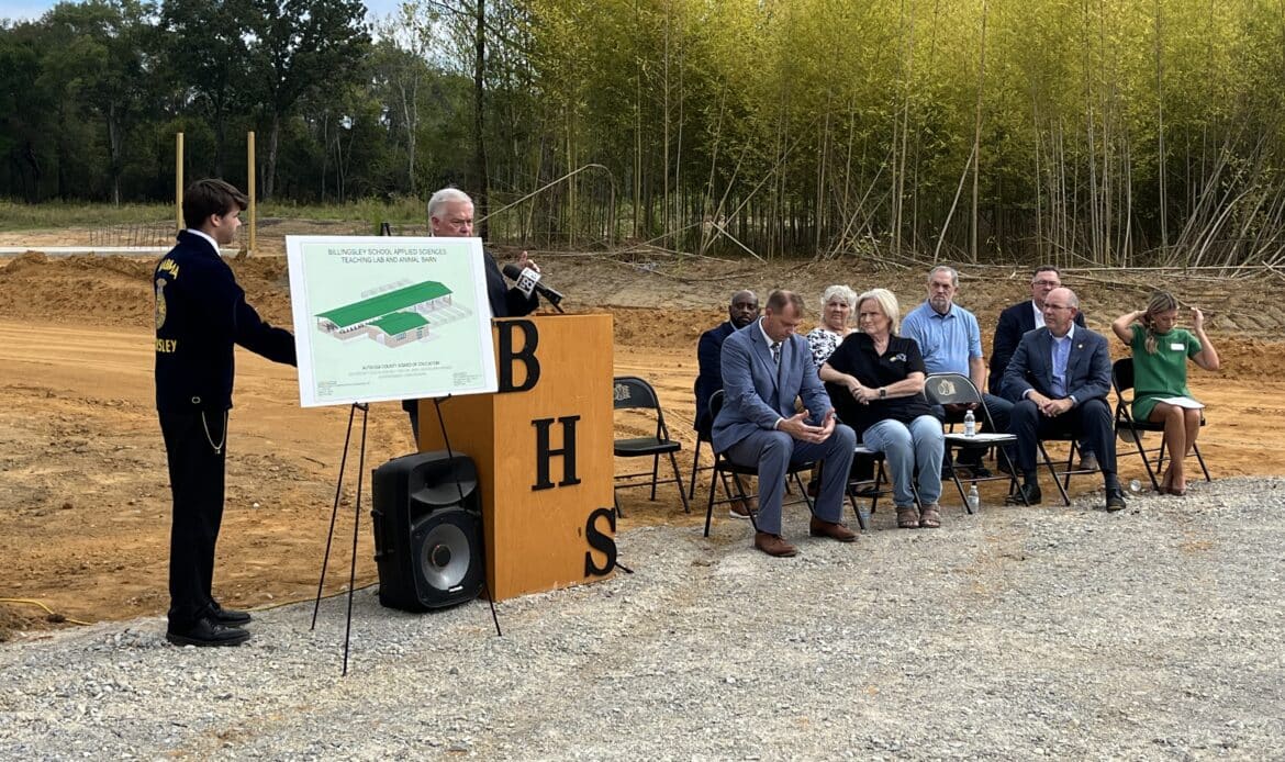 Autauga County Schools officially broke ground on a new Applied Science Livestock Teaching Lab to be constructed on the Billingsley School campus, a first-of-its-kind facility in the state of Alabama that will redefine how students engage with agriscience education. State and community leaders were present to celebrate the nearly $2 million investment in career and technical education, alongside Autauga County Board of Education members and district leadership.