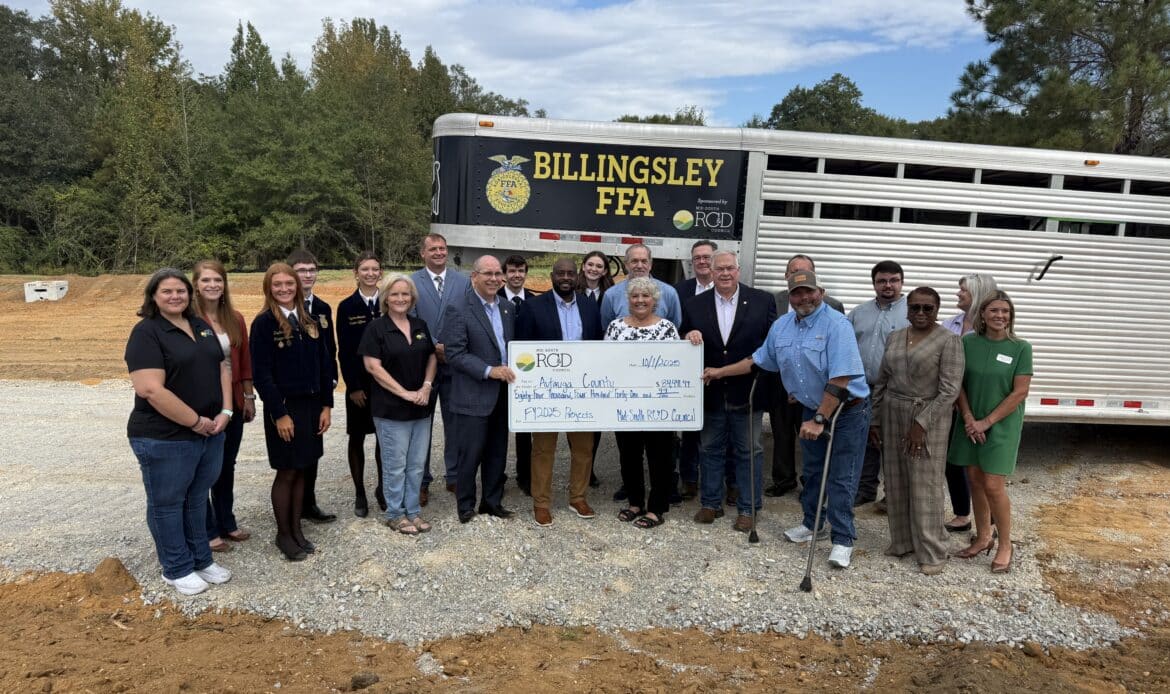 The event concluded with remarks from Pam Hughes, Executive Director of Mid-South RC&D, who, along with Representative Van Smith and Senator Clyde Chambliss, celebrated this momentous event and the previously awarded grant funding that purchased a livestock trailer, which was on display, to assist in hauling animals to and from the soon-to-be facility. Attendees also celebrated the leadership of FFA students with remarks from Adriana Raspberry, Billingsley FFA Chapter President and the Alabama FFA Central District President, whose efforts exemplify the impact and promise of agriscience education in Autauga County.