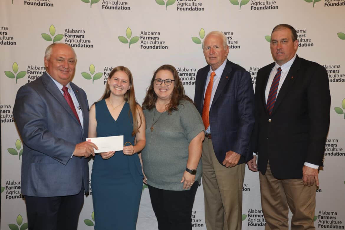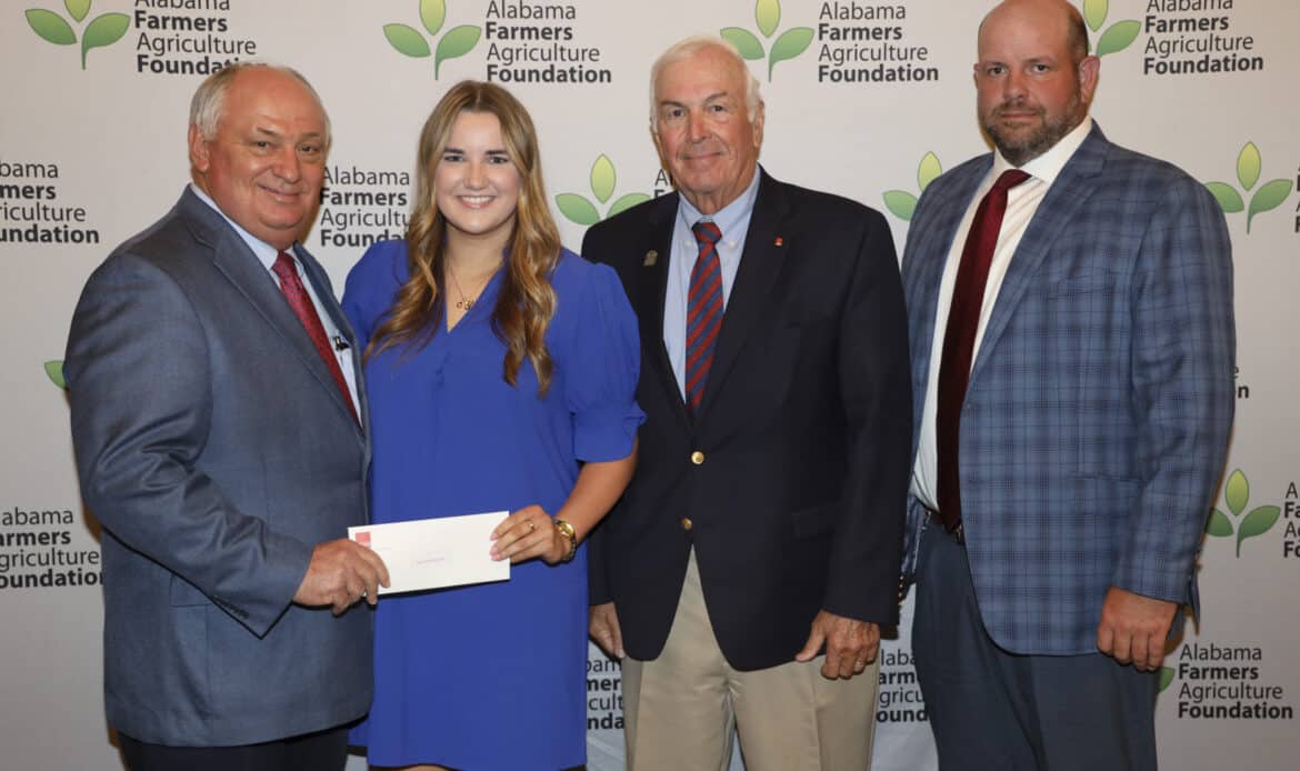 During the scholarship banquet, four special scholarships honored past and present leaders who left a legacy on Alabama agriculture. Limestone County’s Jessa Usery received the inaugural Jerry and Dianne Newby Scholarship. This scholarship was established to honor Limestone County farmer and former Federation President Jerry Newby and his wife, Dianne. Usery is a sophomore studying agricultural communications.