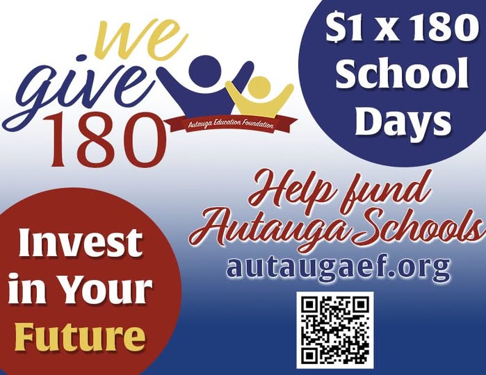 Autauga Education Foundation is heading up the “We Give 180” campaign with Autauga County Schools. This initiative is to help support funding for schools in the program within Autauga County.