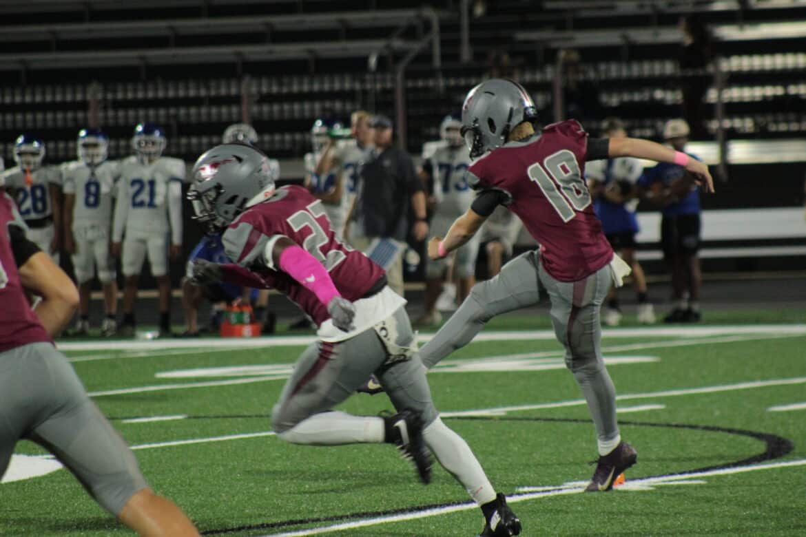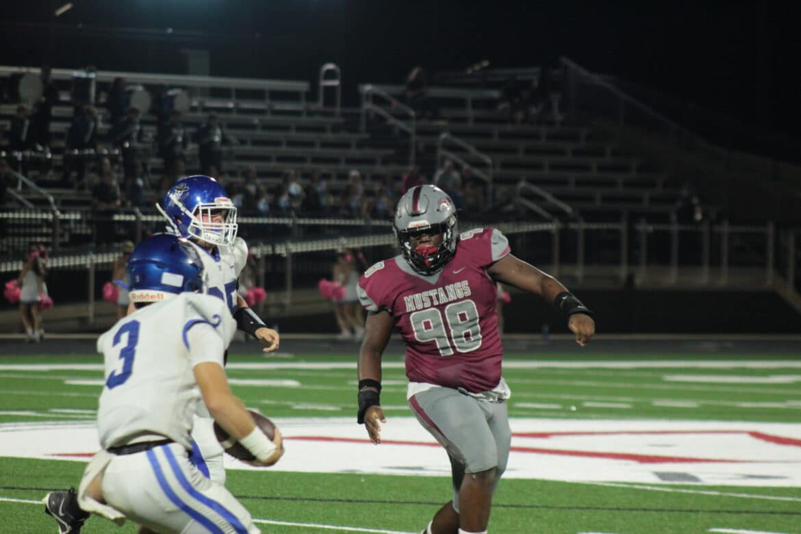 Mustangs’ defensive back Jay Stone added a 20-yard interception returned for a touchdown late in the 4th quarter for the final score of the game, as the Mustangs coasted to a 47-26 victory in the all-important region game.