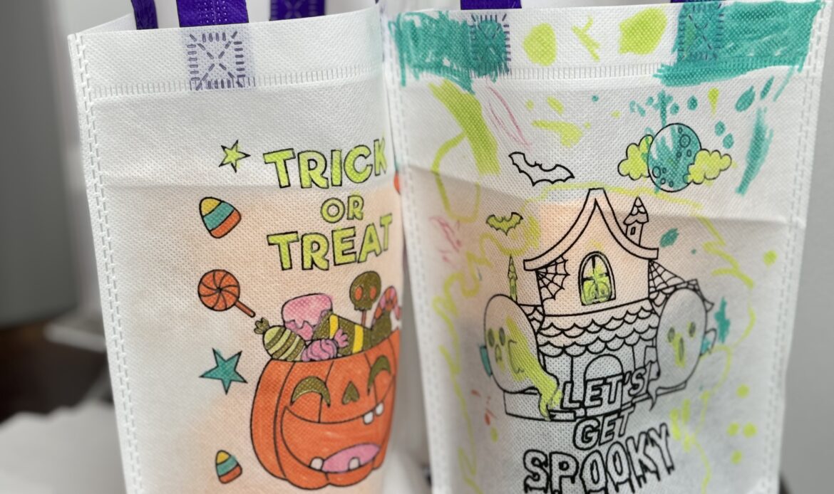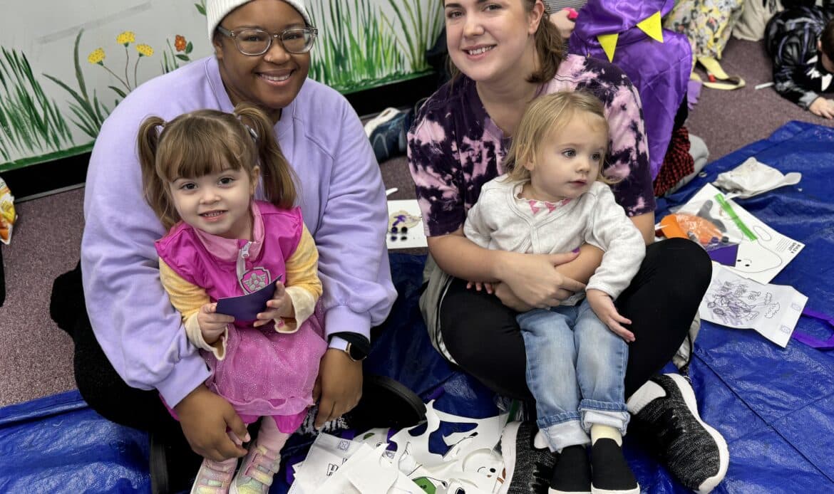 The children’s librarian, Angela Dewberry, read four Halloween books to the children during the story hour. The families enjoyed coloring trick-or-treat bags, coloring sheets, and cutouts to take home. Dewberry also read a popular book that the children love listening to each week in October, called 𝐼𝑛 𝑡ℎ𝑒 𝐷𝑎𝑟𝑘, 𝐷𝑎𝑟𝑘 𝑊𝑜𝑜𝑑 by David A. Carter.