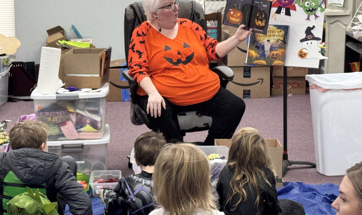 On Thursday, Oct. 30th, 2025, the Millbrook Public Library had its weekly story hour. This week, children dressed up in their Halloween costumes for the story hour and trick-or-treated around the library.
