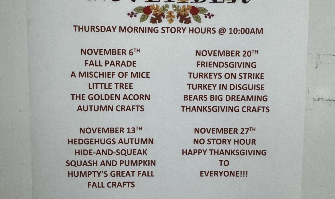 “I love the holidays, and I look forward to this event each year. I love reading holiday stories, passing out crafts, and seeing the children trick-or-treating around the library. It is fun for me, fun for everyone, and I can share my favorite scary story for October. It scares the tuna salad out of one and all,” said Dewberry.