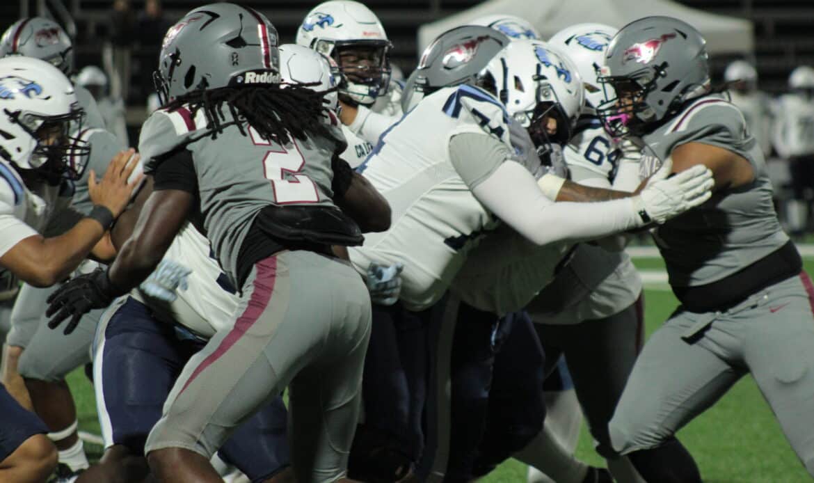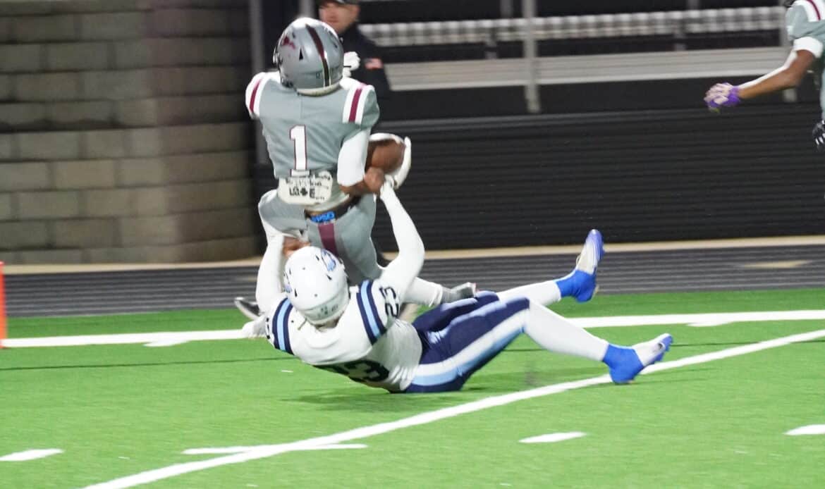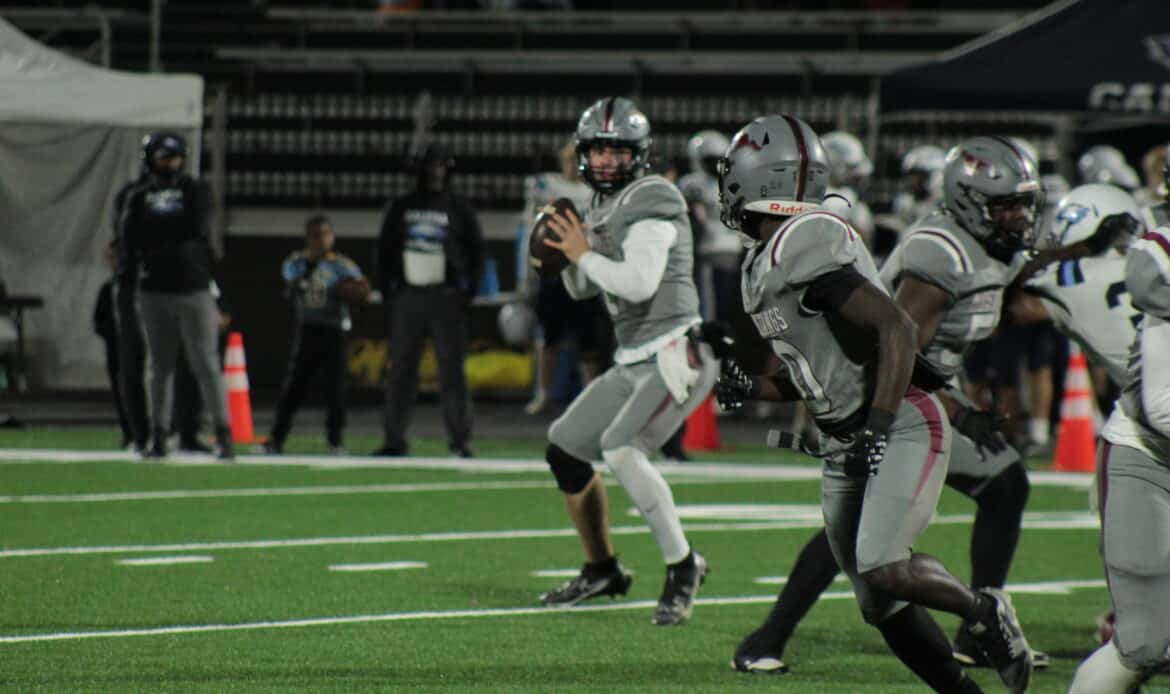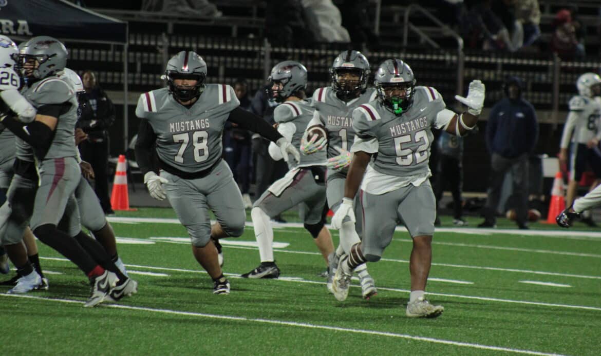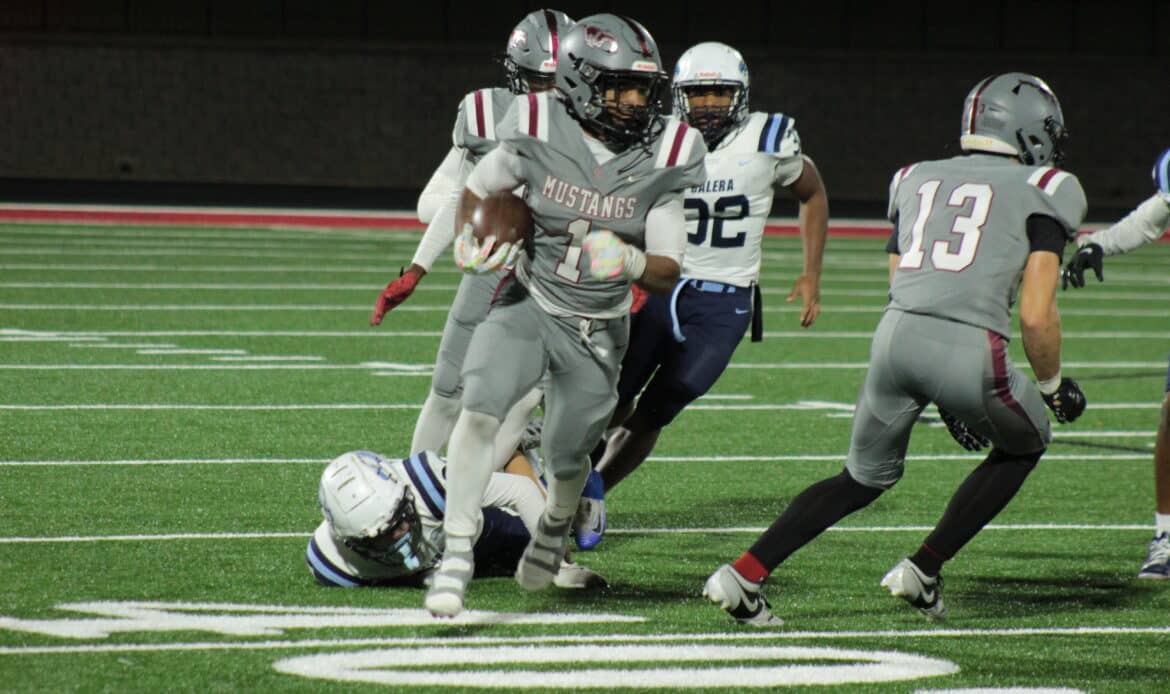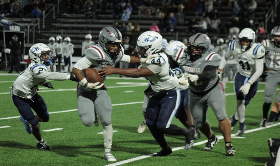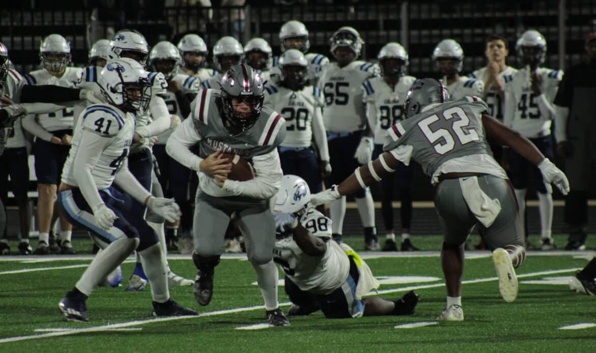 The Mustangs’ Jay Stone returned the opening kickoff for a touchdown. After holding the Eagles to a 3 and out, the Mustangs got the ball with good field position, and in four plays running back Dee Barnes scored to put the Mustangs up 14-0 just four minutes into the game.