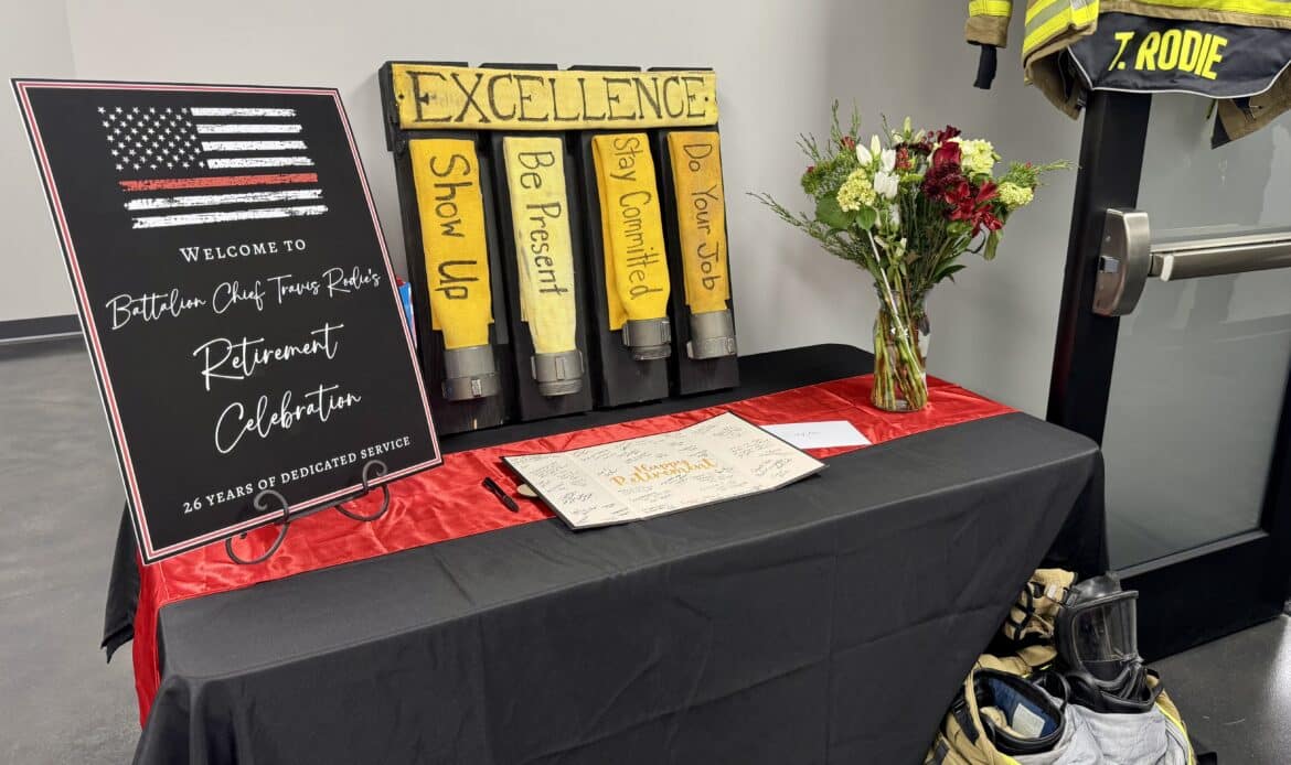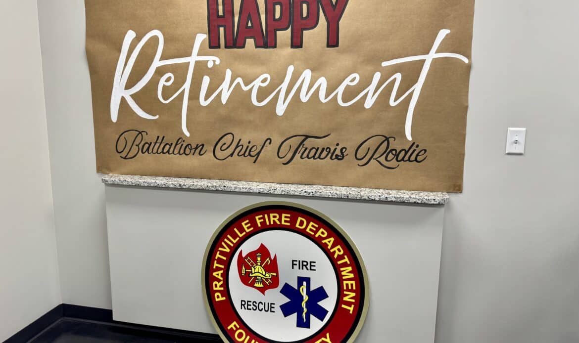 Prattville Fire Department’s (PFD’s) Battalion Chief Travis Rodie celebrated his retirement, Dec. 22, 2025, at Stanley Gann Training Center, marking the end of a 26-year career of dedicated service.