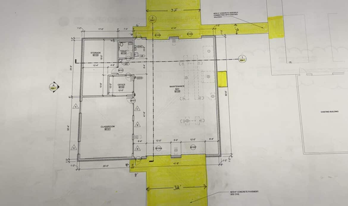 “They’ve worked on a school bus that parks in our side lot, bringing it over when possible, and we’ve had a few diesel vehicles come through that could fit into the automotive lab,” she said. “Our automotive teacher has been very generous in sharing his space, but this new shop is going to take the program to the next level.”