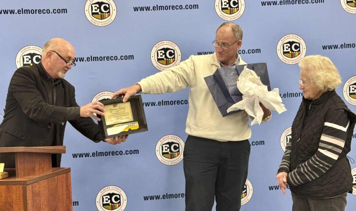 The Elmore County Board of Education held its monthly meeting on Tuesday, Jan. 20, 2026. During the meeting, Director of Transportation Ray Mullino honored bus driver Rebecca Kenney for her outstanding service to the Elmore County Public School System.