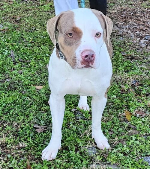 Kitty is a 2 1/2-year-old female Pit mix, 50-60 lbs, found as a stray, brought to us and never reclaimed which is such a shame as she is just a love! Kitty craves attention, loves playing and does have a fair amount of energy to burn so would do best with an active owner. She is good with other dogs who are as rambunctious as her. And Kitty just LOVES any cat she meets, hence her name!