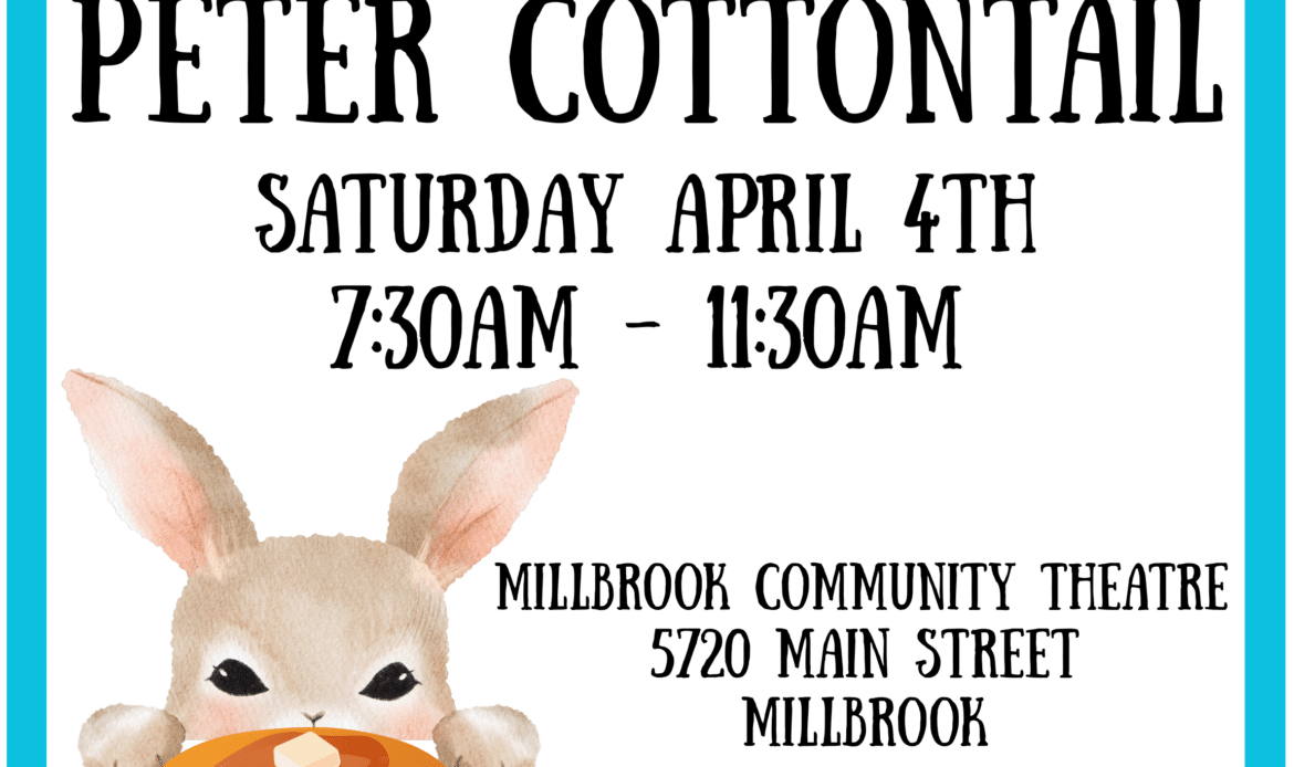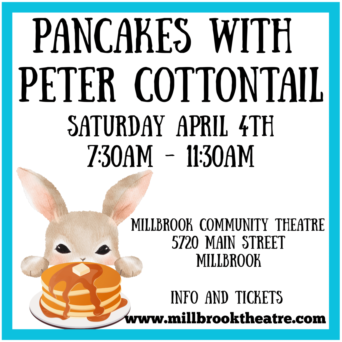 Before Peter Cottontail hops down the bunny trail, he is making a special stop at the Millbrook Community Theatre, and you are invited! Enjoy a delicious pancake breakfast while Peter visits your table, then snap some adorable Easter photos before you head out.