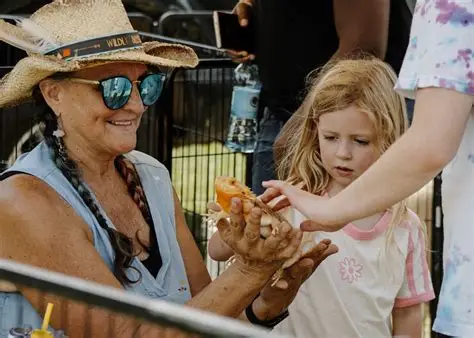 At Wildly Blessed, during open farm days, visitors can make butter, plant pollinator-friendly flowers, learn about honeybees, and even safely hold a drone bee. Guests can also make candles, observe bees up close in an observation hive, and sample honey from around the world, all while interacting with the farm’s many animals.