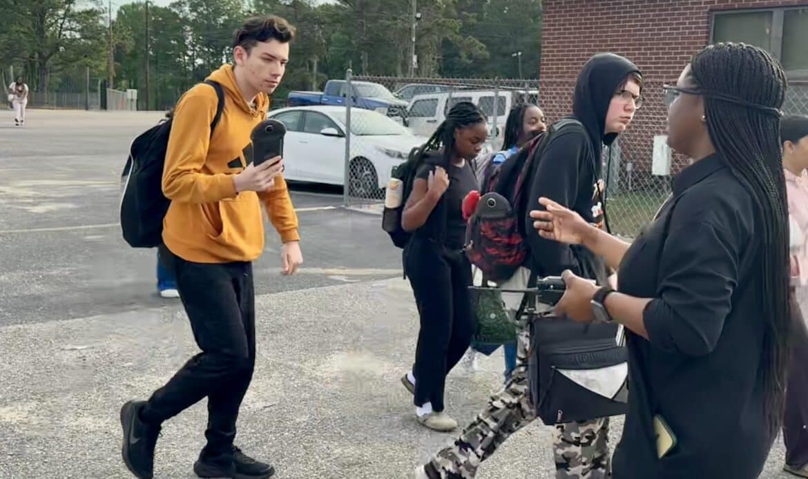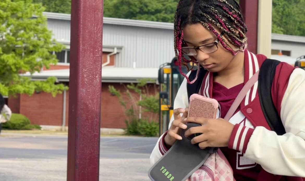 Dunsieth explained that the pouches make it more obvious when students are using their phones. If a student has their phone out, their teacher is required to contact administrators to address the incident, removing the burden from teachers and minimizing classroom disruptions. Administrators also visit classrooms throughout the day to conduct random pouch checks, reinforcing the policy and supporting teachers.