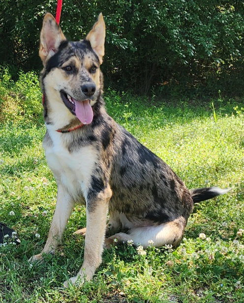 Fallon is a two-year-old female German Shepherd/Aussie looking mix, 65 lbs. She came to us as a stray never reclaimed. Very striking lady, good with other dogs, smart, very treat motivated, not a couch potato but not crazy either. Best for an active family where she can be a part of hikes and camping trips and other activities.